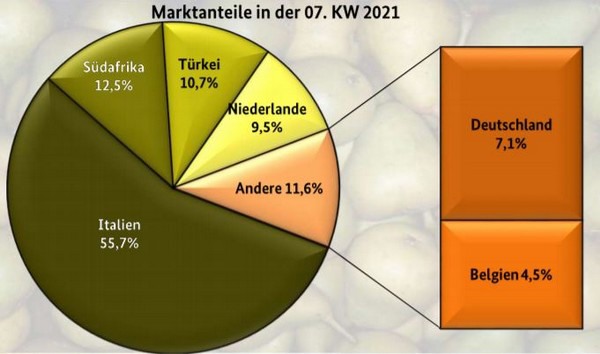 Anche dalla Germania sono arrivate le Conferenze, tra le altre, che hanno registrato un aumento dei prezzi a Colonia. La Turchia ha inviato principalmente le Santa Maria e successivamente Devici. La domanda non è stata particolarmente forte ed è stata facilmente soddisfatta. I prezzi spesso sono rimasti al livello precedente, poiché l'offerta si è sufficientemente adeguata agli scambi.