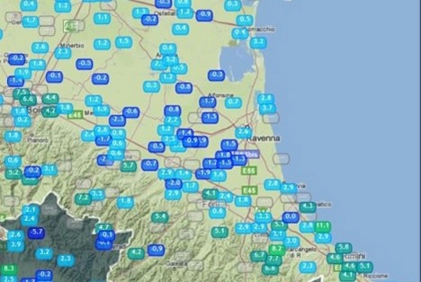 Per la seconda notte consecutiva, questa mattina 2 marzo 2021, le temperature sono scese sottozero. Lo dimostra anche la carta delle stazioni meteoregionali, ma rilevando la temperatura a 80 cm dal suolo, la situazione è più grave: ad esempio, ieri 1 marzo 2021 in zona Russi (Ravenna) un imprenditore ha registrato -4.8°C a 80 cm di altezza. Le stazioni meteo invece hanno i sensori più in alto, mentre questa mattina la temperatura minima, alla medesima altezza, è stata di 3.7 sottozero, seppure per un breve periodo (sotto i 3 gradi sottozero meno di tre ore).