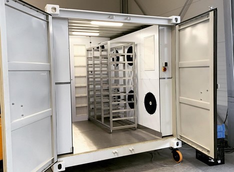 Il container di essiccazione misura 2,2 m x 3 m x 2,5 m.