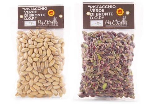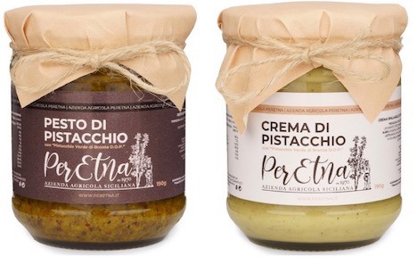 PerEtna trasforma il pistacchio in crema, pesto (in formato da 190 grammi) e granella (disponibile in formato da 100 g), con processi artigianali per mantenere le proprietà salutari della materia prima.