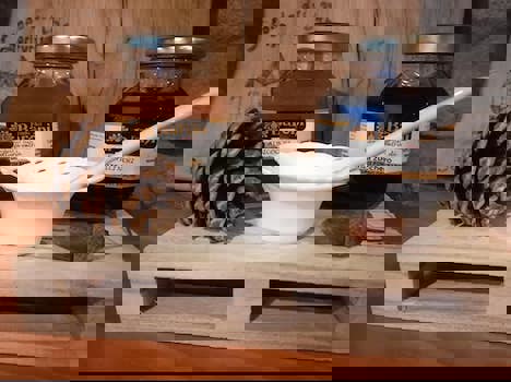 "Per quanto riguarda la linea salata, la Vellutata di Cipolla di Tropea è il nostro prodotto di punta. La cipolla viene pelata a mano, tritata finemente e messa in cottura con l'aggiunta di solo aceto di mele e zucchero, uva passita biologica e un po' di succo di sambuco di nostra produzione. Quindi messa in cottura in sottovuoto per circa 30 minuti e confezionata in vaso di vetro da 300 grammi".
