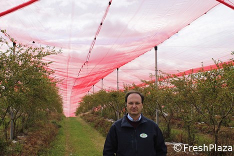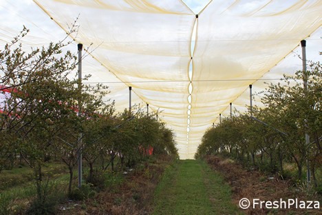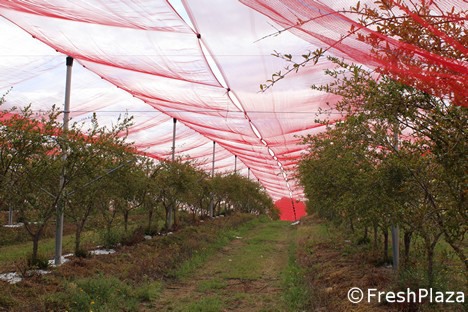 "Abbiamo iniziato a coprire le varietà ultra precoci Emek e Shany, le quali arriveranno a maturazione nell'ultima settimana di agosto. Queste reti, oltre alla loro maggior funzione di proteggere la pianta da eventuali grandinate, hanno anche la capacità di filtrare una certa percentuale dei raggi UV, al fine di preservare il frutto da una esposizione solare che, diversamente, potrebbe nuocere ai frutti di melograno, ad esempio in termini di bruciature".