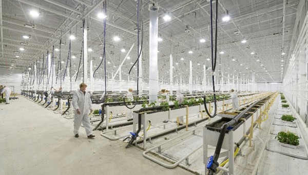 La produzione in un sistema acquaponico significa che le piante vengono fertilizzate con acqua ricca di nutrienti proveniente dalle vasche dei pesci. Assorbendo i nutrienti dall'acqua, le radici delle piante la filtrano anche prima che questa ritorni nella vasca dei pesci. L'unica aggiunta all'acqua, secondo quanto riferito, è il mangime per pesci.