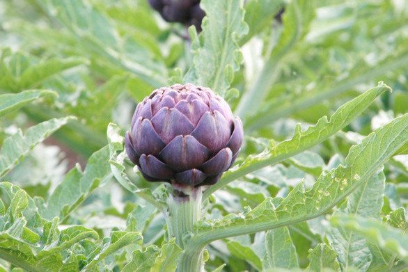 Grande carciofo viola Cardinal in campo. Foto fornita da L'œil de Paco, Prince de Bretagne