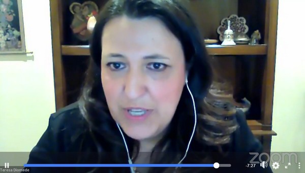 L'incontro è terminato con una proposta di Teresa Diomede (nella foto sotto), condivisa dalle associazioni intervenute, che riguarda la redazione di un breve questionario che indaghi sulle abitudini alimentari e sulla qualità della vita fuori dal luogo di lavoro, cui faccia seguito una campagna di promozione al consumo di frutta, verdura, olio e vino, soprattutto quelle che provengono dalle aziende dove i dipendenti stessi lavorano.