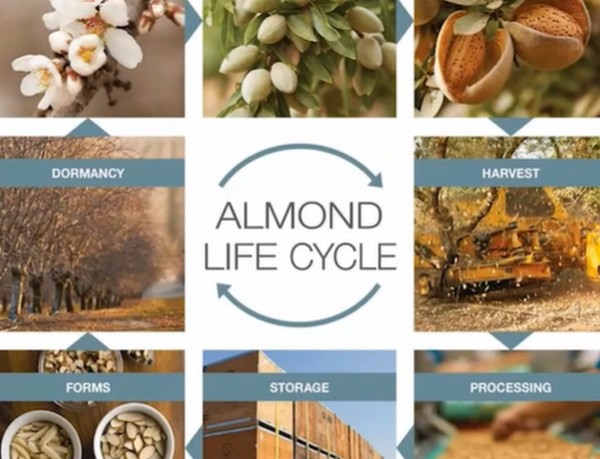 In riferimento al ciclo di vita della mandorla della California, la senior manager ha riassunto brevemente i vari passaggi. "I mandorli perdono le foglie a fine novembre, segnando l'inizio della dormienza. Le temperature fredde invernali permettono agli alberi di riposare e immagazzinare le energie necessarie per la successiva stagione di coltivazione. Gli alberi hanno bisogno di circa 400 ore di freddo per arrivare a gemmazione. Le piogge invernali risanano i terreni e forniscono agli alberi le risorse idriche necessarie a inizio primavera. A fine gennaio, le gemme cominciano a gonfiarsi".