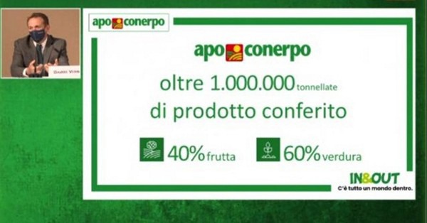 "Grazie a IN&OUT, intendiamo raggiungere milioni di consumatori raccontando il nostro impegno per la sostenibilità ambientale, etica ed economica - spiega Davide Vernocchi, presidente di Apo Conerpo - da oltre 20 anni come OP cooperativa promuoviamo fra i nostri soci agricoltori il modello della produzione integrata, riducendo l'impiego di mezzi chimici e applicando metodi a basso impatto ambientale per ottenere prodotti di elevata qualità senza sprecare acqua, preservando il suolo, valorizzando la stagionalità dei prodotti, combattendo il cambiamento climatico e cercando di garantire, nel contempo, un adeguato reddito ai produttori. Come OP possiamo dire di operare già nella direzione indicata dagli obiettivi di sostenibilità dell'European Green Deal".