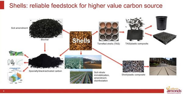 Nel periodo 2016-2020 sono stati spesi 2,08 milioni di dollari per identificare nuovi usi per i co-prodotti della mandorla. Gran parte dello studio si è focalizzata sul mallo e sul suo utilizzo nel settore mangimi, che rappresenta la migliore opportunità al momento. "Abbiamo condotto anche una ricerca che ha mostrato del potenziale per l'alimentazione umana: fibre alimentari, zuccheri e sostanze fitochimiche possono essere, infatti, utilizzati nella produzione alimentare".
