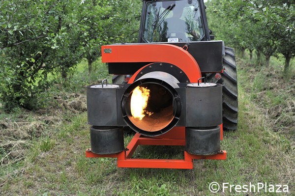 "La nostra macchina è trainata - ha spiegato Roberta Tagliaferri di R&M - ed è sufficiente una trattrice da 60 cv, che abbia almeno 40 cv alla pdp. E' costituita da una turbina azionata dalla pdp e da un bruciatore alimentato a gasolio. Il serbatoio del gasolio ha una capacità di oltre 250 litri. Nello scorso mese di aprile, dove è stata usata, ha permesso di salvare la produzione (cfr. FreshPlaza del 15/04/2021)".