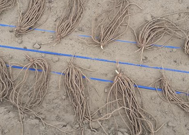 La protezione della produzione è stata garantita da un piccolo tunnel coperto da un film termico. Purtroppo, una gelata nella prima decade di aprile ha penalizzato lo sviluppo vegetativo, ma con questo sistema si pensa di poter garantire alla coltivazione circa 50-60 giorni in più di vegetazione, in modo da accumulare il massimo delle sostanze di riserva.