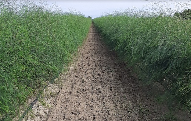 L'asparagiaia 60 giorni dopo la fine raccolta: a confronto le cv. Vittorio (a destra) e Vitalim (a sinistra)