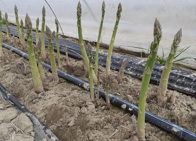 Nel 2020 è stata realizzata una prima coltivazione studiata per ottenere una produzione anticipata, sfruttando il calore prodotto da energia elettrica. Ad aprile 2021 è stato messo a dimora in parallelo un secondo lotto, di circa 1 ettaro. L'impianto in questione, realizzato presso l'azienda agricola di Davide Zanellati a Bosco Mesola (Ferrara), in un'areale altamente vocato per la produzione dell'asparago verde tutelato dal Consorzio dell'Asparago Verde di Altedo IGP.