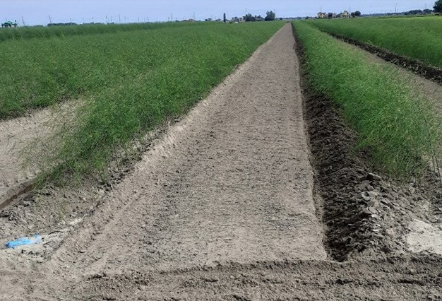 Dopo il posizionamento dei cavi elettrici nella seconda decade di aprile, sono state posizionate le zampe di asparago, poi coperte con circa 10-15 cm di terra