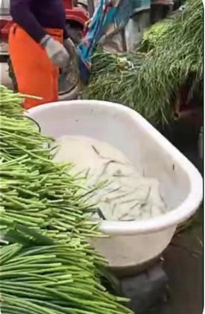 "Il pre-raffreddamento è un buon metodo per aiutare i germogli d'aglio a trarre il massimo vantaggio dalla loro conservazione. E gli agricoltori spesso immergono i germogli d'aglio in un liquido conservante, simile al latte. L'elemento attivo di questo conservante è il procloraz. Il conservante viene applicato prima che i germogli d'aglio entrino in magazzino, o durante il processo di pre-raffreddamento. Le punte dei germogli d'aglio vengono immerse nel conservante, oppure la sostanza viene applicata come spray. Dopo di che il conservante viene lasciato asciugare prima che i germogli d'aglio vengano confezionati. Il conservante limita la crescita di funghi e mantiene i germogli d'aglio verdi e freschi", ha detto Zhang.