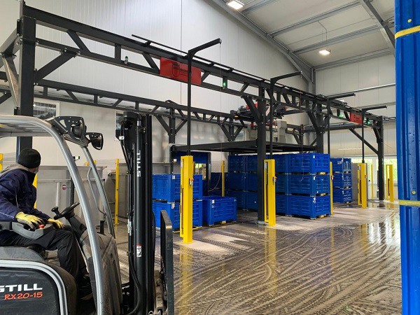 Il capannone è dotato di un portale 3-D per lo scarico dell'acqua. Ciò significa che ora le casse possono essere svuotate non solo con movimenti in avanti e indietro, ma anche da sinistra e da destra.