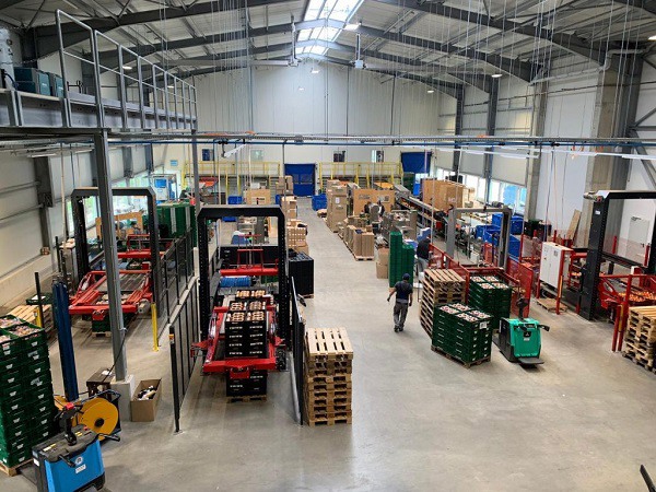 In pratica, lo stabilimento è stato automatizzato ancora di più. Chi opera con i carrelli elevatori ha un proprio PC cui vengono inviati direttamente gli ordini di imballaggio e ora questi dipendenti possono trasportare la merce da un punto a un altro in modo ancora più organizzato e strutturato. Inoltre, su ogni linea c'è un pallettizzatore integrato, in modo che non si debbano più impilare le merci a mano.