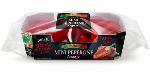 Angello Solarelli è il primo peperone dolce snack e senza semi, sul mercato italiano. Particolarmente gustoso e delicato, si adatta al consumo veloce, fresco, nei momenti diversi della giornata. Pronto in insalata, per gli aperitivi e i cocktail è un prodotto super salutistico, buono e bello da vedere.