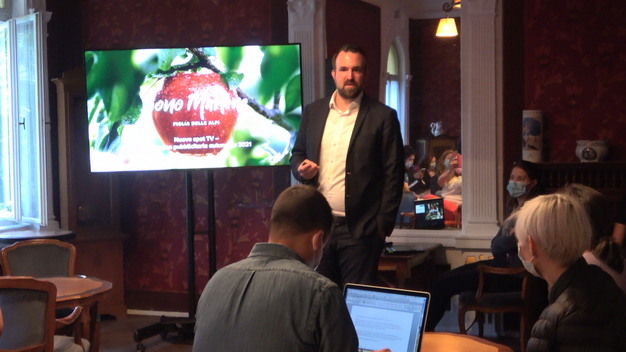 Walter Pardatscher, direttore generale di Vog, il Consorzio delle Cooperative Ortofrutticole Altoatesine, che commercializza, tra gli altri, il marchio Marlene, mentre illustra ai partecipanti al press tour la nuova campagna marketing. Clicca qui per accedere all'album fotografico completo.