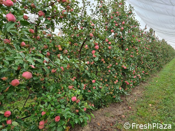 Presso l'azienda Marconi la mela si presenta quasi pronta, con un elevato grado zuccherino e colore uniforme, favorito dall'escursione termica fra giorno e notte delle scorse settimane. Gli impianti di Marconi sono coperti con reti antinsetto e antigrandine monoblocco.