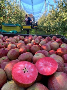 Per la mela a polpa rossa e ticchiolatura resistente, coltivata e commercializzata in Italia da Clementi (BZ) e per la produzione biologica e biodinamica da Bio Meran (BZ), si prevede un raccolto di 2.500 tonnellate, quindi una disponibilità per la campagna 2021/22 in aumento nonostante qualche perdita causata dalle gelate primaverili.