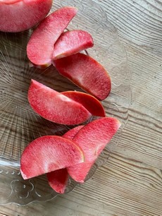Le mele Red Moon, oltre alla stupefacente colorazione interna, hanno un particolare profilo nutritivo, caratterizzato da elevato contenuto in antociani e polifenoli, potenti antiossidanti naturali, che la rendono in linea con i più attuali food trend che vogliono coniugare il salutare col piacere.