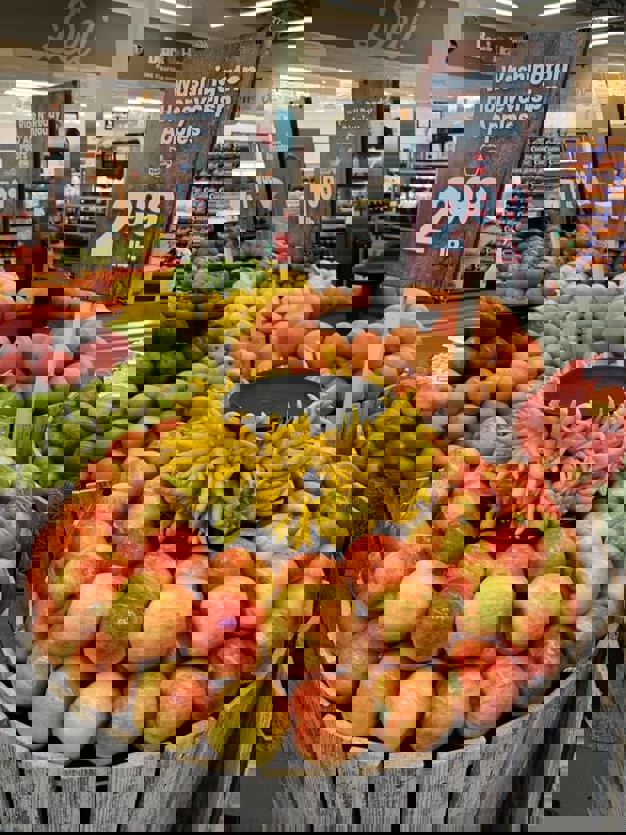 Le foto che seguono, mostrano delle isole con sacchetti di cavolini di Bruxelles e diversi tipi di cavoli, agrumi e mele. Anche il reparto refrigerati si presenta molto bene, in questi supermercati americani. Si guardi l'ultima foto, quella con l'espositore vuoto e si notino i peperoni sullo sfondo!