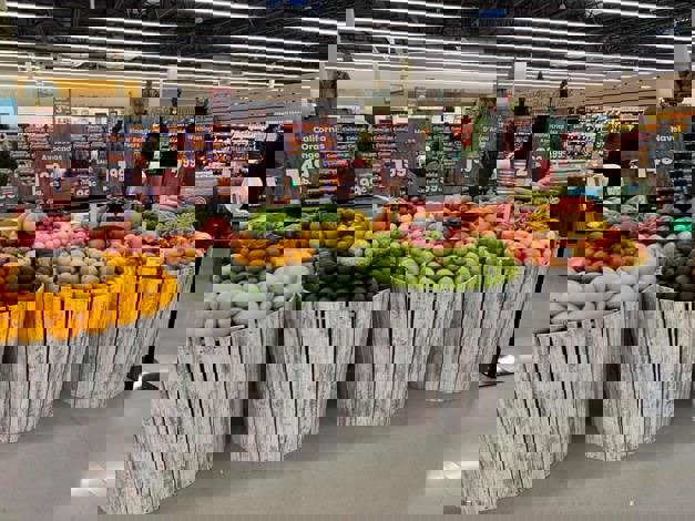 Le foto che seguono, mostrano delle isole con sacchetti di cavolini di Bruxelles e diversi tipi di cavoli, agrumi e mele. Anche il reparto refrigerati si presenta molto bene, in questi supermercati americani. Si guardi l'ultima foto, quella con l'espositore vuoto e si notino i peperoni sullo sfondo!