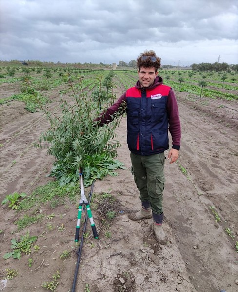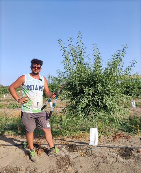 "Eravamo stanchi di vedere su questo suolo colture a bassissimo reddito, nonostante fossimo consapevoli dei significativi e duraturi ristagni idrici. Dopo esserci adeguatamente informati da esperti in materia, nel gennaio del 2020 abbiamo messo a dimora le prime 2.400 piante di mandorlo della varietà Lauranne (6,5 ettari), su portainnesto GF677. Grazie alla tecnica della baulatura sulle file, di un'altezza pari a 40 cm e una larghezza di circa 1,5 m, siamo riusciti a realizzare il nostro mandorleto, ora gestito con il metodo innovativo Zaragoza. L'impianto di irrigazione è stato istallato al centro della baula, in modo che le radici si sviluppino completamente su di essa. Le piante hanno una straordinaria vigoria e quest'anno è previsto il nostro primo raccolto".