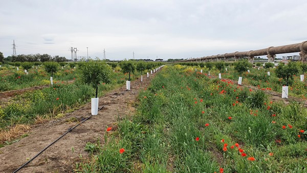 "Eravamo stanchi di vedere su questo suolo colture a bassissimo reddito, nonostante fossimo consapevoli dei significativi e duraturi ristagni idrici. Dopo esserci adeguatamente informati da esperti in materia, nel gennaio del 2020 abbiamo messo a dimora le prime 2.400 piante di mandorlo della varietà Lauranne (6,5 ettari), su portainnesto GF677. Grazie alla tecnica della baulatura sulle file, di un'altezza pari a 40 cm e una larghezza di circa 1,5 m, siamo riusciti a realizzare il nostro mandorleto, ora gestito con il metodo innovativo Zaragoza. L'impianto di irrigazione è stato istallato al centro della baula, in modo che le radici si sviluppino completamente su di essa. Le piante hanno una straordinaria vigoria e quest'anno è previsto il nostro primo raccolto".