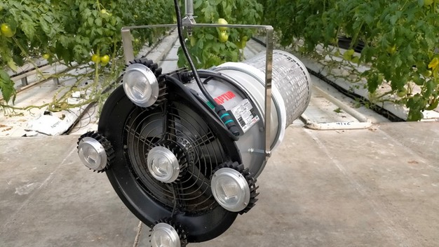 La macchina ha delle luci a led molto particolari che si accendono solo di notte, per evitare di attirare i bombi, in modo da richiamare le falene della Tuta absoluta e aspirarle in un collettore.