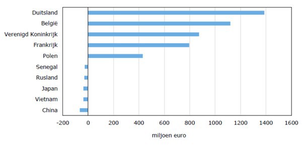 Le prime 10 destinazioni d’esportazione per i prodotti agricoli rappresentano il 71,9% dell'esportazione agricola totale. Germania (25%), Belgio (12%), Francia e Regno Unito (entrambi 8%) sono tradizionalmente le destinazioni più importanti. Seguono Italia, Cina (entrambe al 4%), Spagna, Polonia, USA (tutte al 3%) e Danimarca (2%).