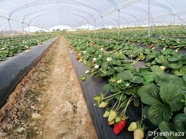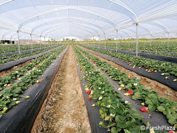 Abbiamo visitato un impianto di fragole della Basilicata di Angelo Andrisani, titolare della società agricola Fruttitalia nonché presidente della O.P. Agorà, coperto da un film termoplastico di nuova generazione della Retilplast, il Polyfilm Ultra. Trattasi di una copertura plastica con una duplice funzione: nei mesi invernali ha un'intensità luminosa pari a 87% (trasmittanza totale nel PAR da 400 a 700 nm), mentre nei periodi di forte intensità luminosa vanta una luce diffusa del 83% e passaggio UV 55%