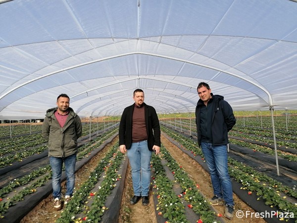 Da sinistra: Klody Shana (socio società Fruttitalia), Domenico Laviola (agronomo) e Angelo Andrisani (titolare società Fruttitalia società).