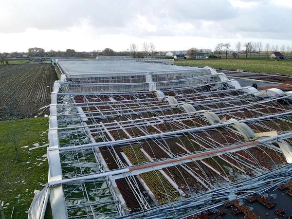 Oltre a molti piccoli danni e a qualche finestra rotta, hanno anche ricevuto decine di segnalazioni da aziende in cui si sono infranti anche oltre 100 pannelli di vetro, e altre con più di 1.000 o addirittura 2.000. "Belgio, Inghilterra e le province dei Paesi Bassi sul Mare del Nord, oltre all’Agriport, a Middenmeer. Ovunque ci sono stati danni. Cerchiamo di aiutare quante più aziende possibile, dando priorità alle situazioni più urgenti, e abbiamo sospeso alcuni progetti di costruzione per dare la possibilità a tutti di riprendersi e tornare in piena attività".