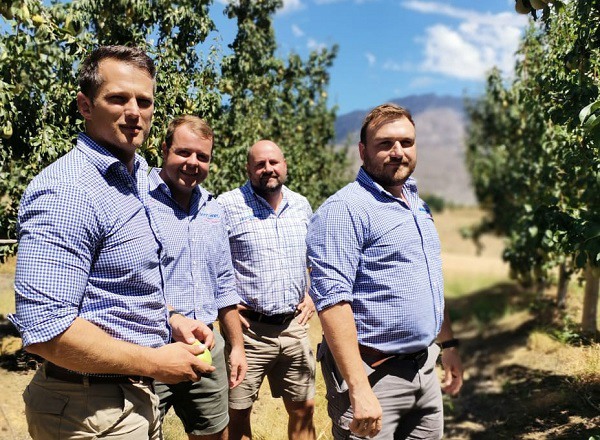 I responsabili alle esportazioni della Good Hope Fruit in un lotto di Abate Fetel: Marnus Schoeman, Melt van Schoor, Anroux Smit e Jan Ras van der Linde