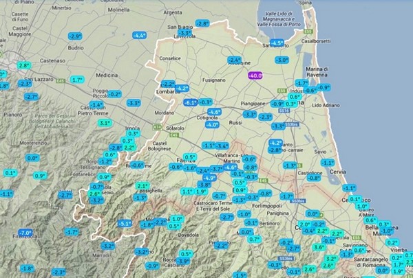 Il meteorologo Pierluigi Randi ha scritto: "Presso l’alba di oggi (2 marzo, ndr) i valori si sono portati localmente fino a -5/-7°C nel ravennate con picchi di -6,8 a Lavezzola (rete ARPAE) e di -6,4°C a Conselice (rete ER-Meteo), con le classiche gelate per irraggiamento radiativo vale a dire nottata completamente serena e vento calmo o quasi dopo l’ingresso di aria piuttosto fredda da nord-est negli ultimi giorni ben sedimentatasi nei bassi strati".