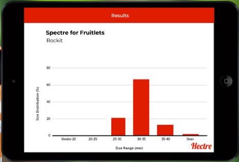 La tecnologia Spectre post-raccolta di Hectre è una soluzione diffusa fra coltivatori e confezionatori che cercano soluzioni mobili, veloci e precise per la calibrazione dei frutti precoci. I clienti includono i giganti della frutta Washington Fruit & Produce, First Fresh NZ, Borton Fruit, Kershaw e Roche, solo per citarne alcuni. Spectre è ora utilizzato in 11 Paesi, in tutto il mondo. L'app post-raccolta Spectre rileva circa 125 pezzi di frutta dallo strato superiore del bins, li calibra e fornisce in pochi secondi un grafico con la stima delle dimensioni dei frutti.