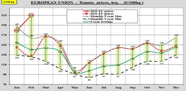 Nei Paesi dell'Europa meridionale, il mercato del pomodoro di febbraio è tradizionalmente caratterizzato da un calo dei prezzi dovuto all'aumento dei volumi tra i concorrenti. Quest'anno tutto è stato diverso, ma succede anche da più tempo.