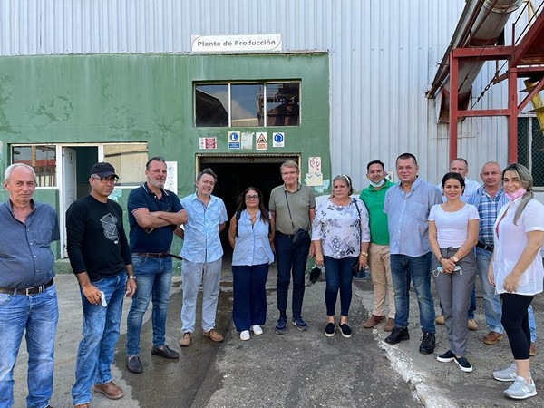 Il gruppo formato da Renzo Piraccini, Simona Autuori direttore di ICE l’Avana, Roberto Giuliotto e Luigi Partenza di AICS Cuba e i dirigenti dell’impresa Agro industriale Ceballos