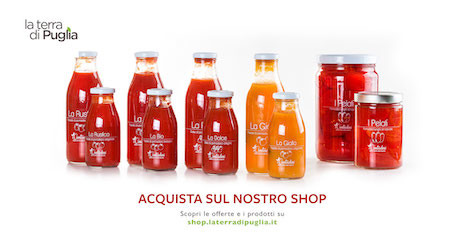 La Terra di Puglia è un progetto nato con l’obiettivo di promuovere le specialità pugliesi nei mercati oltreconfine. Nel giro di breve tempo, il marchio ha intrapreso un percorso di crescita che lo ha visto approdare, dal mondo del marketplace di sapori locali, alla trasformazione e produzione di lavorati tra i più noti della regione Puglia (Italy). L'assortimento spazia dai pomodori essiccati al sole, ai pesti e paté di orticole, alle passate di pomodoro, alla lavorazione di carciofi pugliesi, fino a una varietà di giardiniere a base di verdure autoctone.