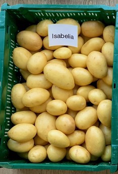 A destra: patate Isabelia appena raccolte, provenienti dall'Egitto.