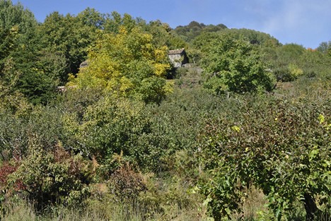 Un meleto circondato dalla fitta vegetazione dell'Etna