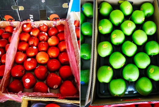 Mele Gala della Nuova Zelanda (a sinistra) e mele verdi statunitensi (a destra)