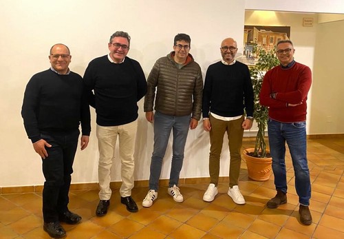 Da sinistra: Aurelio Boncoraglio, Senior Sales Specialist carciofo Sicilia BASF; Luigi Strazzanti, responsabile tecnico e titolare del vivaio Agriemporio Sas; Jader Di Donato, responsabile agronomico di Covalpa Abruzzo e Sole di Sicilia; Saro Tumino, Area Sales Manager BASF; Antonio Tribastone, Trial Technician BASF
