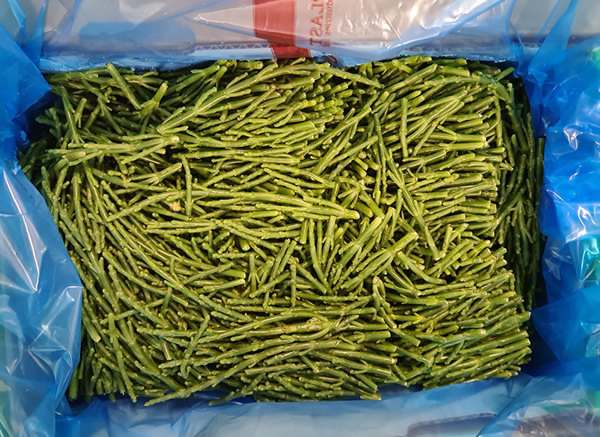 "Ci si aspetta che gli italiani si occupino da soli dell'importazione di questo prodotto, e invece il fatto che un operatore olandese se ne occupi per loro è particolarmente gradito, a quanto pare", dice Frank. La Salicornia arriva a Liegi per via aerea tre volte alla settimana, dopo di che viene trasportata al grossista di Urk.