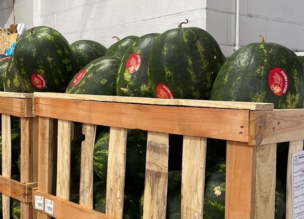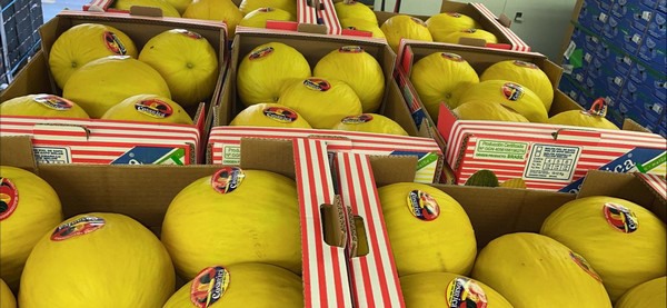 Nelle foto sopra: angurie spagnole; meloni Galia spagnoli; melone giallo brasiliano, lattuga iceberg spagnola (Foto fornite da Giuseppe Iacovazzo).