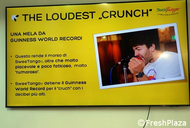 Anche il suo morso è campione del mondo: molto piacevole e poco faticoso, è anche molto rumoroso! Infatti questa mela detiene il Guinness World Record per il "crunch" con i decibel più alti Una mela, insomma, non solo destinata a far rumore, ma che già lo fa!