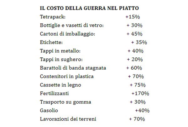 Coldiretti Calabria ha elaborato il report sopra riportato, con l'impennata dei prezzi che si sono avuti a causa della guerra in Ucraina su alcuni prodotti. "Certamente una situazione non tranquillizzante per il settore in un momento in cui si è aperto uno scenario di accaparramenti, speculazioni e incertezza che deve spingerci a difendere la sovranità alimentare".