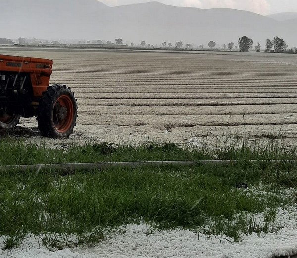Lunedì pomeriggio, 16 maggio 2022, l'area orientale della Piana del Fucino (Abruzzo) è stata colpita da violenti temporali e grandinate. L'area è nota per la produzione di patate e carote, con un fatturato di alcune centinaia di milioni di euro l'anno.