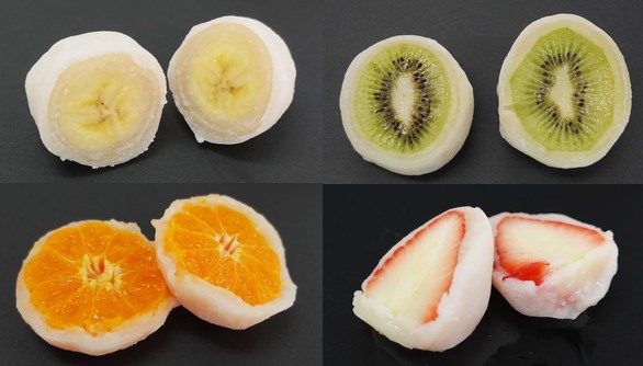 Come suggerisce il nome, il Fruit Daifuku può contenere diversi tipi di frutta, come mandarino, mela, kiwi, ananas, mango, avvolti nella pasta dolce di fagioli.